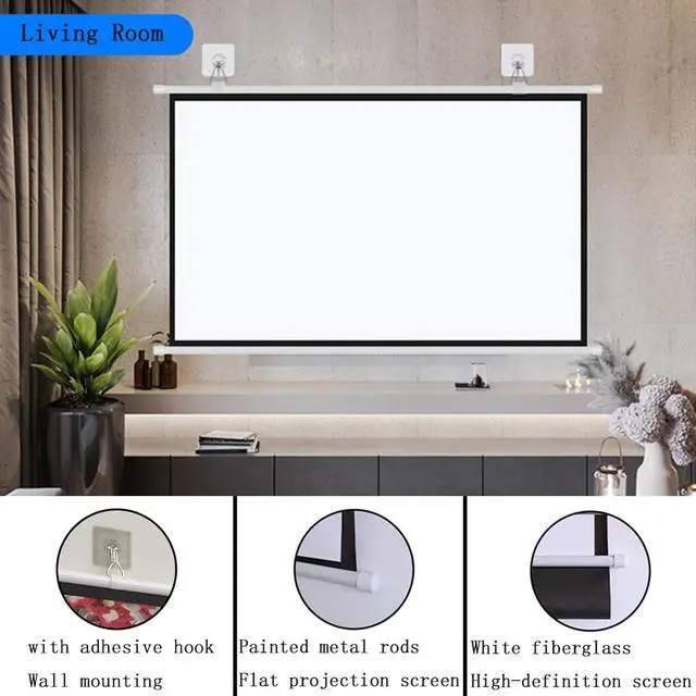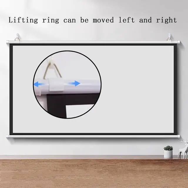 The manual pull-down projection screen roll-type storage design is lightweight, easy to store and carry, saves space, and can be installed on the wall with a convenient adhesive hook design.
