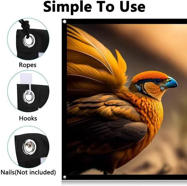 Size: Projector screens, available in a variety of sizes for you to choose from, for an impressive viewing experience. Whether indoors or outdoors, enjoy crisp visuals and crisp audio