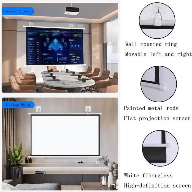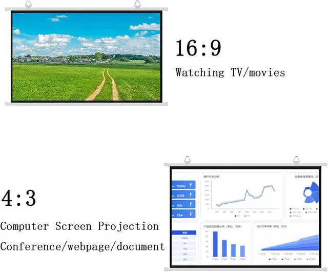 Projector screen, 4K HD 16:9 and 4:3 ratio, movie screen is specially designed to provide clear HD images, rich colors and a good viewing experience in different viewing positions.