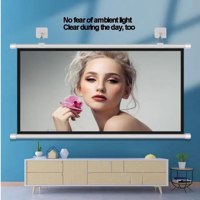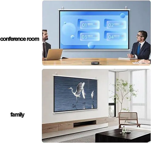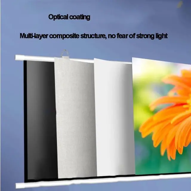 The manual pull-down projection screen is made of high-quality nanofiberglass to deliver crisp, high-resolution 4K images with rich colors, protect the eyes from fatigue, and be thick, smooth, and wrinkle-free.
