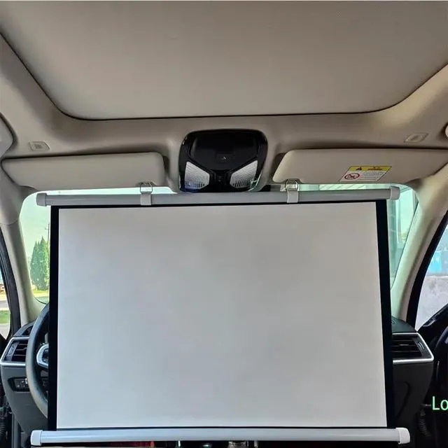 The portable projector screen is easy to use and requires no installation. It can be easily unfolded by pulling down manually, and can be rolled up for storage and transportation when not in use.