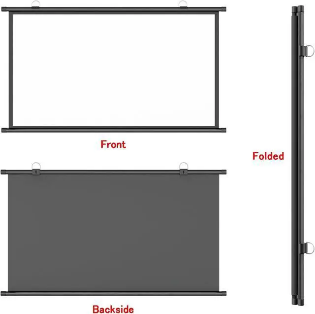 HD Projector Screen: made of high quality PVC with 2.5 gain which helps to increase brightness and improve image clarity. The black backing helps control unwanted light interference and provides a better viewing experience.