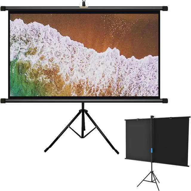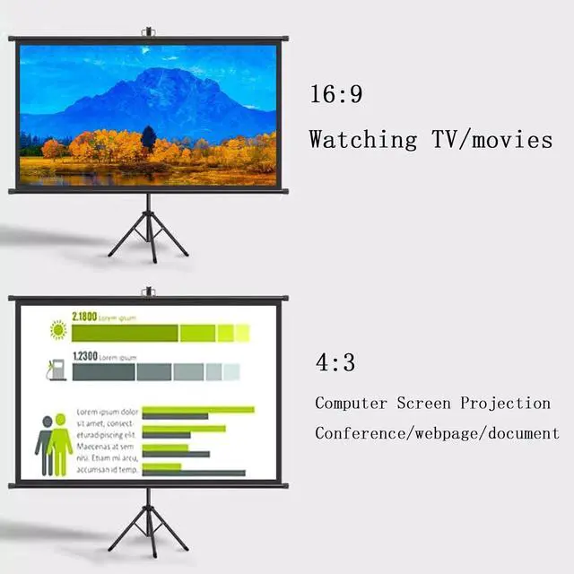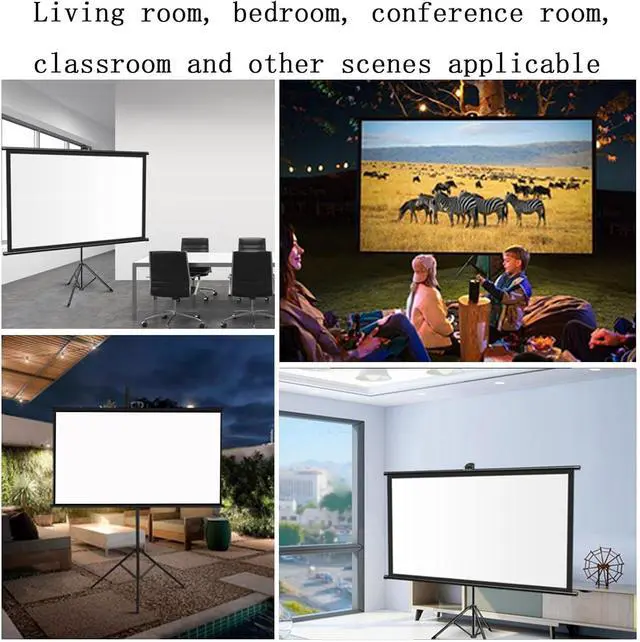 [Tripod projection screen] The tripod stand-alone projection screen does not require any construction on the wall, as long as there is space to open the tripod, pull up the screen and hang it on the hook, it can be used.
