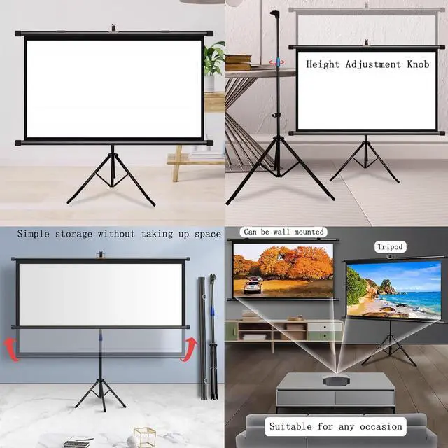 [Portable Projection Screen] The projection screen is easy to carry, the tripod can be extended, folded and adjusted in height, easy to transport and well protected, you can lift it with just one hand, take it anywhere and start your movie journey .