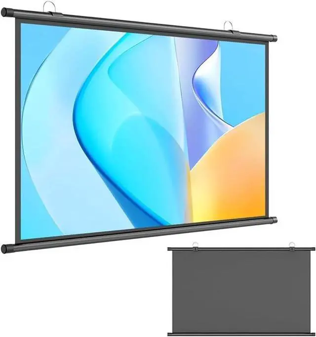 Space saving: Manual pull-down projection screen can be installed on the ceiling/wall and can be rolled up for storage when not in use, making it easy to carry and store