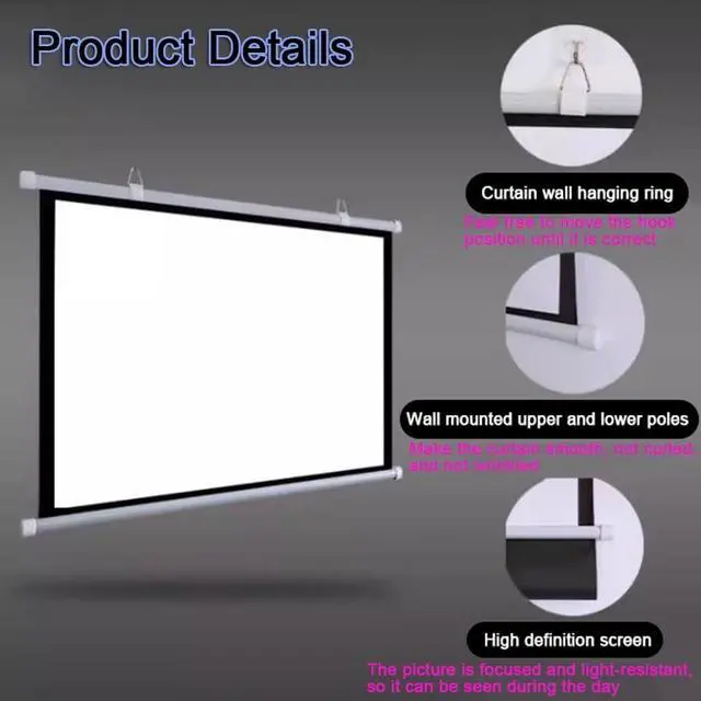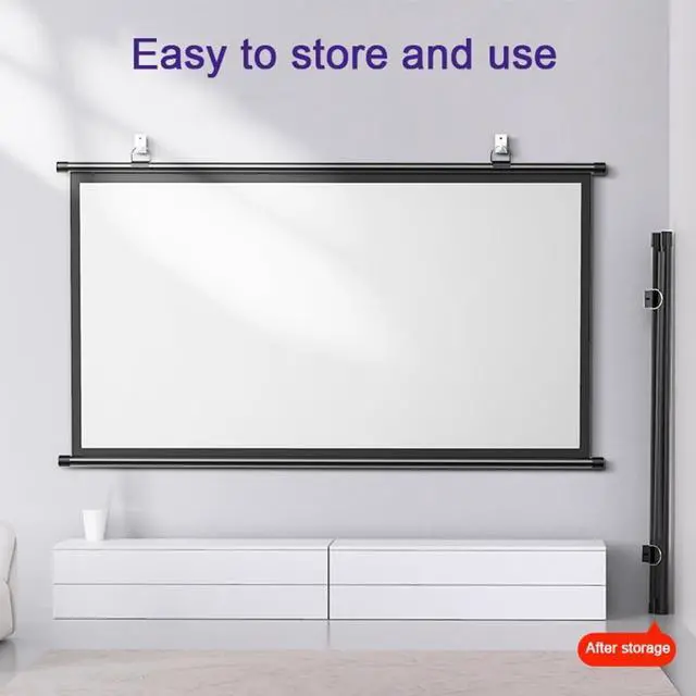 Easy to install: The projection screen can be hung on the wall or ceiling and can be installed in just a few minutes