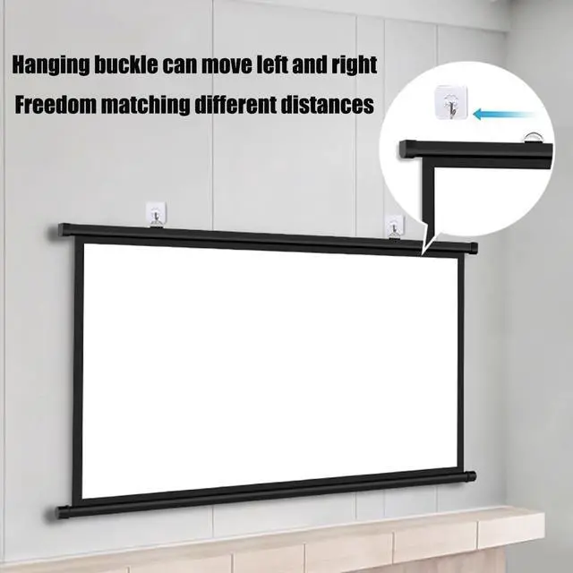 Flexible installation options: The projector screen can be wall-mounted and ceiling-mounted at will, and the hanging ring can be moved left and right to freely adjust the distance as needed, giving you the flexibility to choose the ideal setting that suits your needs.