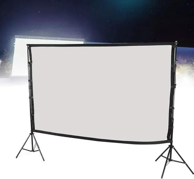 [Versatile Entertainment Solution] Transform any space into an entertainment hub with this multifunctional projector screen. for watching movies streaming tv shows playing video games or displaying presentations. the white polyester ensures excellent reflectivity making it suitable for both indoor and outdoor use in various lighting conditions.