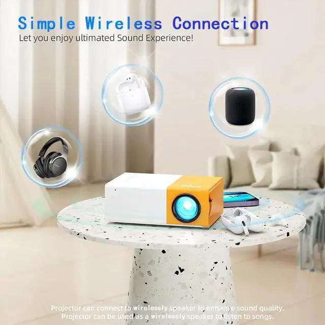 anywhere to enrich your cinematic audio experience: This projector can also act as a speaker, connecting your phone and then enjoy music from the projector. Its digital zoom function saves you hassle from moving the projector back and forth by adjusting image size from 50%-100% at your fingertips.
