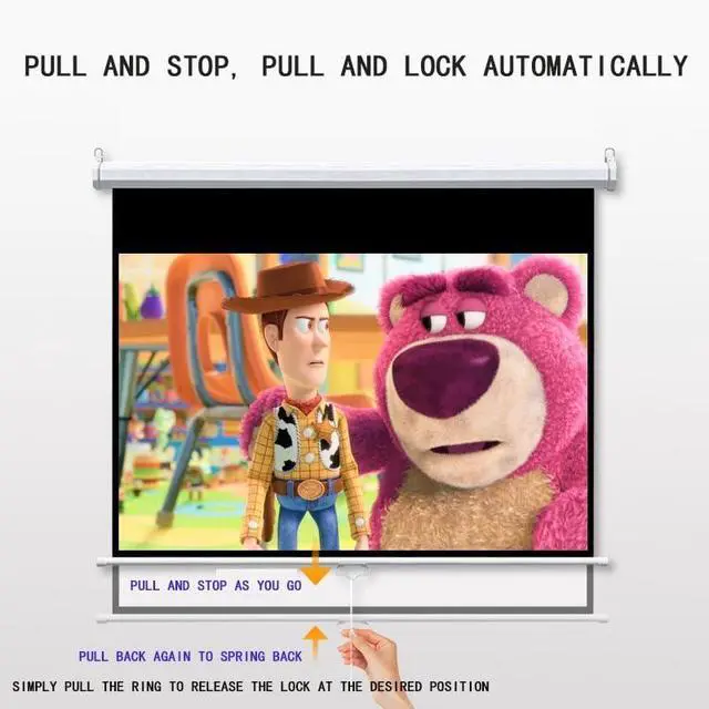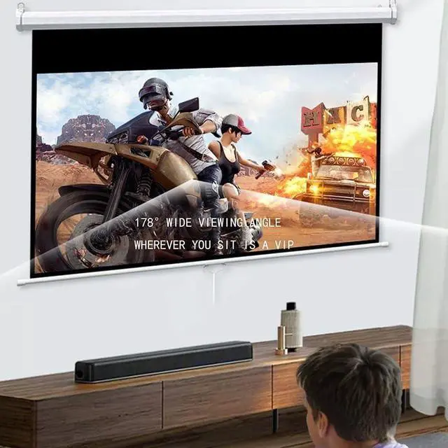 Wrinkle-Free PVC Screen, Indoor/outdoor projector screen is made of 3-layer thickened PVC material, which allows you to get rid of wrinkles and won't be torn easily. Aluminum casing and bottom bar are sturdy and well-made