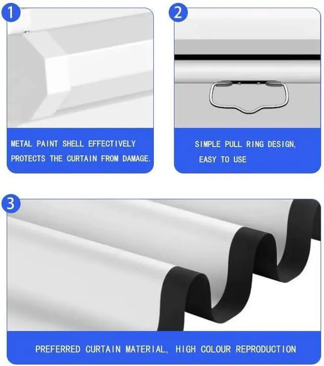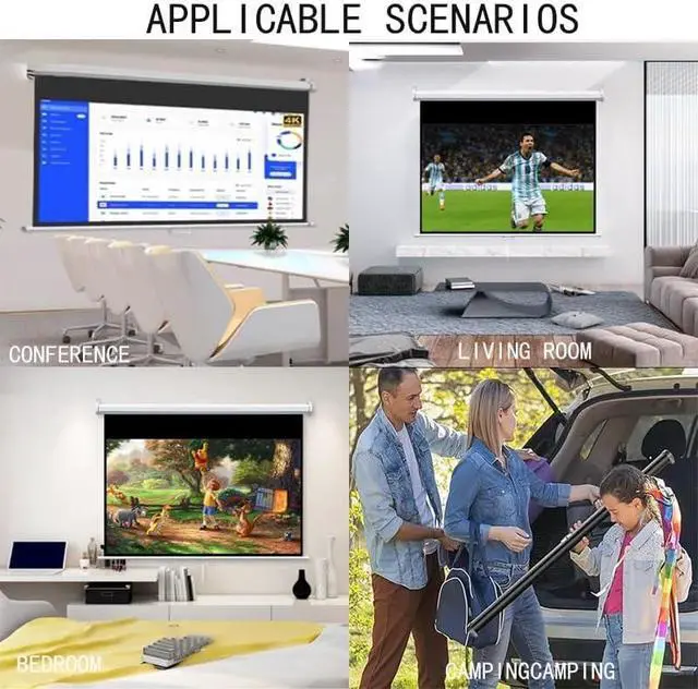Easy to Install,Movie projector screen supports wall mounting and ceiling mounting, flexible positioning, easy to install in just a few minutes, allowing you to quickly get a great viewing experience, a ideal partner for your home and conference room