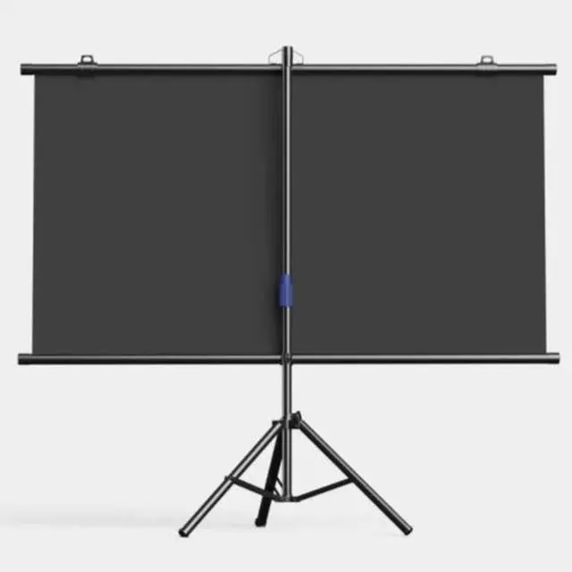 Stable tripod base and projection screen have a very textured metal frame, which feels smooth and comfortable to the touch. It is not only advanced, but also lightweight and durable.