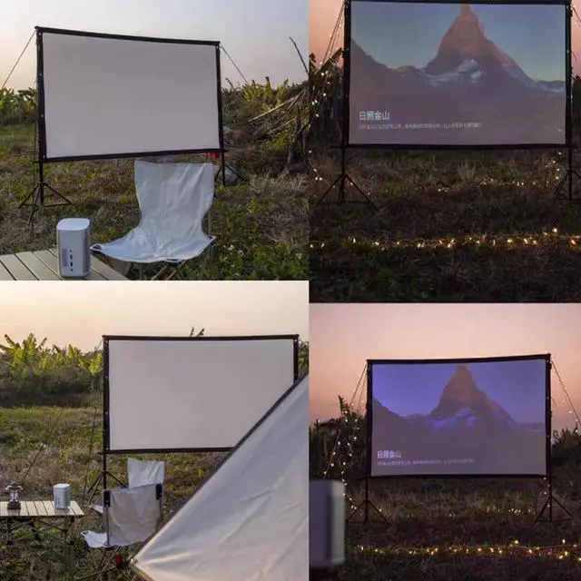Flexible fabric has no creases, providing a cinema screen like experience. The skin friendly material fabric is washable and sun resistant, and can be folded for storage.