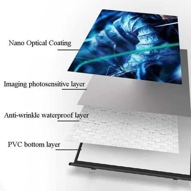 High-quality materials: The manual projection screen is made of high-quality white fiberglass material, consisting of 4 layers of projection optical coating, with true color reproduction and good light transmission resistance, bringing you and your family a high-definition visual experience.