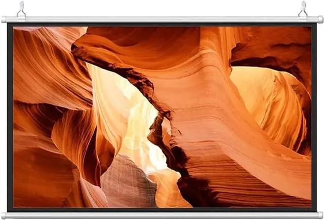 The manual pull-down projection screen has a black lining on the back that helps reduce unwanted light interference, providing a better viewing experience.