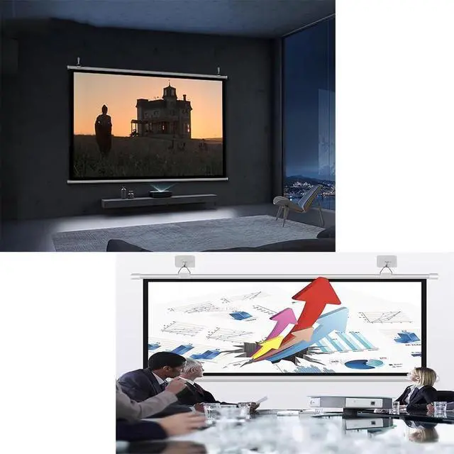 The 16:9/4:3 projection screen can be easily pulled down, made of high-quality fiberglass, ensuring long-term use without fading or deformation. It is thick, smooth, and resistant to wrinkles.