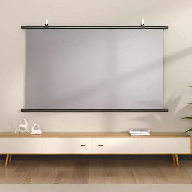 Portable mini projector screen is more of a table-top screen, you can put it on the table of living room or conference room and enjoy the home cinema or do the business presentation. It has elegant design on appearance, aluminium housing with glossy coating, triangular support structure on back, easy to stretch and retract. the size is compact, you can carry it to wherever you want to giving presentation, playing game or enjoying movies. It is an exquisite mini-projector-screen, you'll love it.