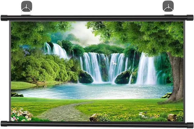 Black upper and lower bars can effectively support the screen; you can easily lower the projector screen, the suspension ring can be moved left and right, freely adjust the distance as needed, the projector screen can be easily hung on the wall or ceiling.
