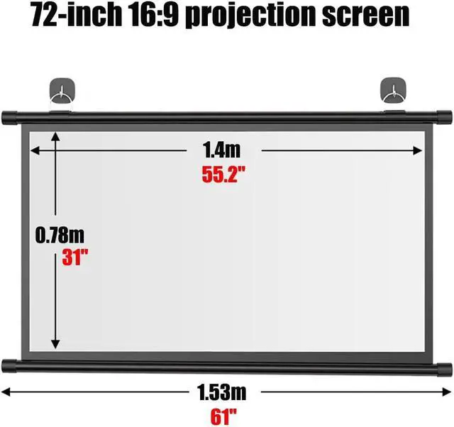 60 inches/72 inches/80 inches projection screen, provides 16:9/4:3 aspect ratio, can be used in different scenes. Lightweight and portable, it can be easily rolled up manually for storage or traveling with it.