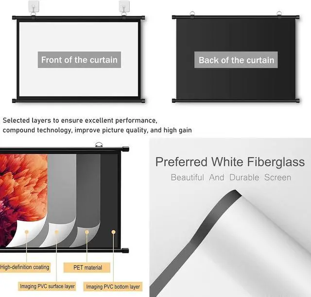 Easy to Install: Our projection screen is easy to install and can be mounted on walls and ceilings, not only keeping the screen stable but also bringing a better viewing experience.