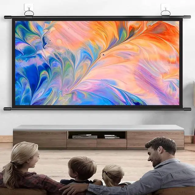 Flexible installation options: The projection screen can be installed on the wall or ceiling at will, and the hanging ring can be moved left and right, allowing you to freely adjust the distance as needed, allowing you to flexibly choose the ideal configuration that suits you.