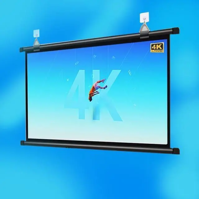 Manual drop down projector screen without wrinkles, ideal for home theater, schools, offices, weddings, churches, education, conference room presentations, public exhibitions, outdoor movies; can also be used for PPt presentations and other displays