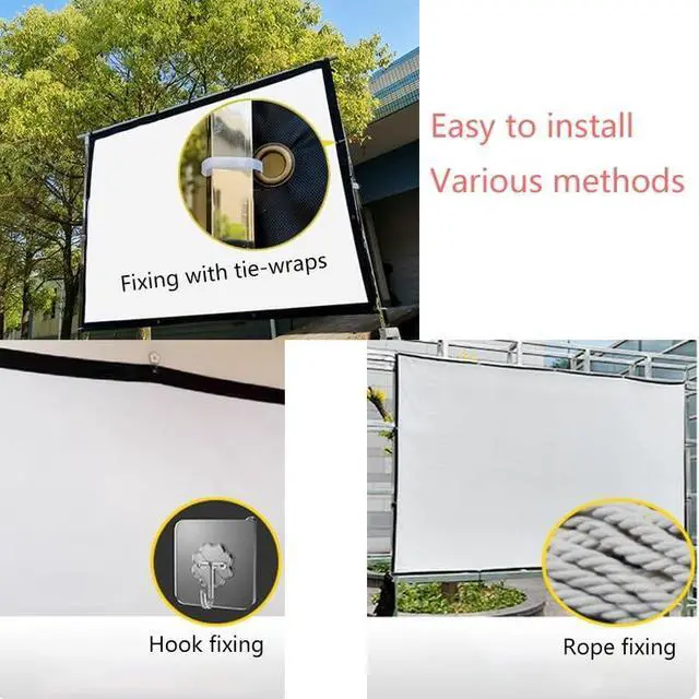 Easy to install: you can use ties, rope, hooks, nails and other tools to fix the projection screen