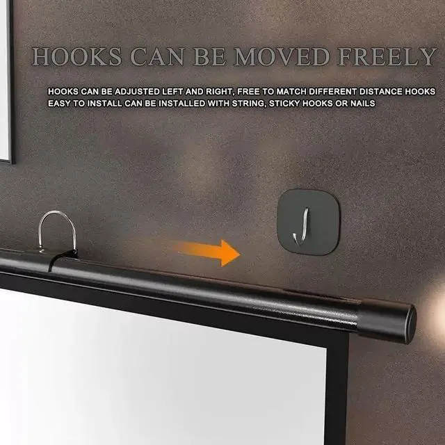The projector movie screen top hook is adjustable from side to side for free movement and can be mounted using rope, hooks and nails. Easy and convenient installation