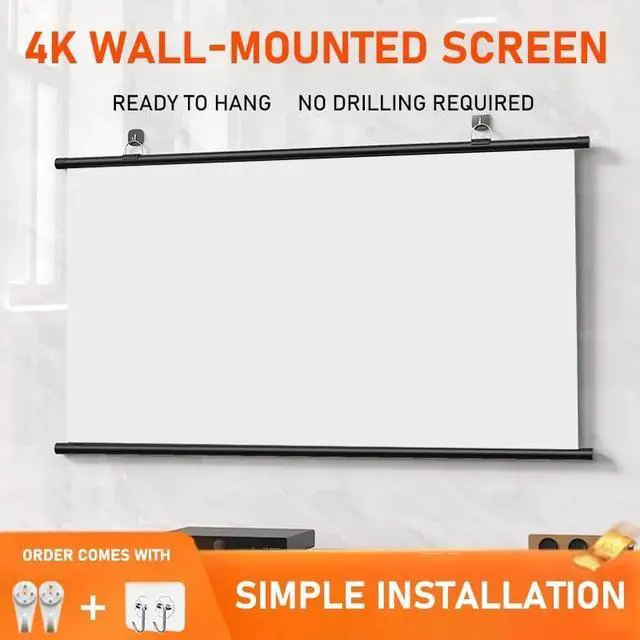The no-hole HD wall mounted screen is made of white fiberglass material, the plug and wipe reproduction is real, support 4K, can be home/commercial. Give you an immersive visual experience