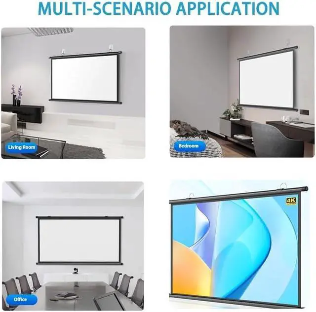 Practicality: The manual roll down projector screen can turn your living room, conference room or backyard into an entertainment center. Immerse yourself in stunning visual effects and give you and your family, friends or coworkers a different visual experience