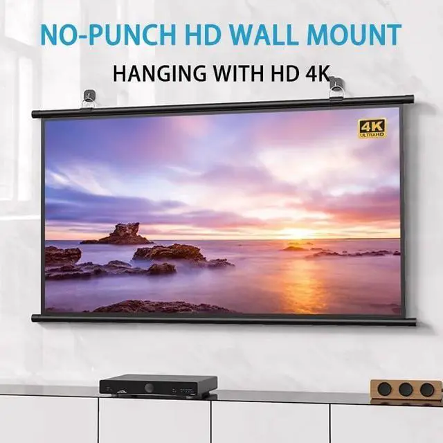 Easy to Install: The wrinkle-free projector movie screen's lightweight and portable design allows for easy installation in both indoor and outdoor environments. The screen can be easily mounted on walls and ceilings. Simple and practical