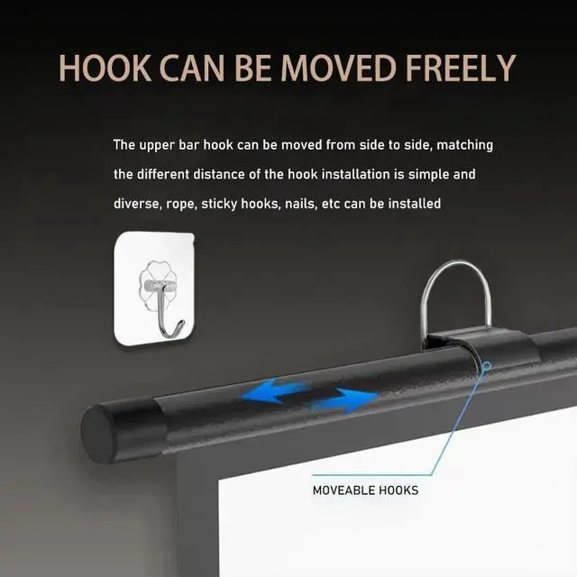 Convenient movie screen without punching holes, does not hurt the wall, with mobile hooks, clips can be slid at will, can be equipped with any distance hooks, installation is more hassle-free