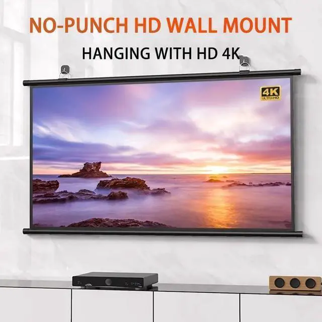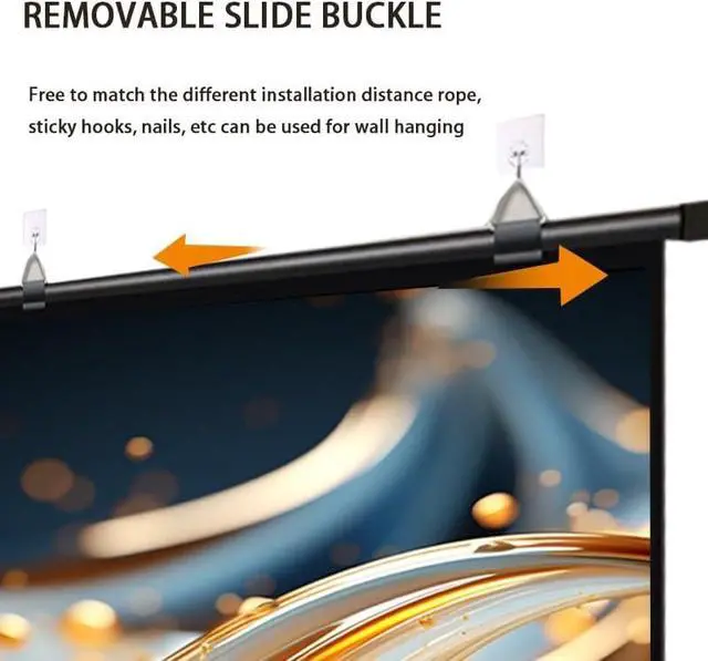 Convenient: portable projection screen reel is designed to be easy to carry on the go, the HD movie projection screen can be easily mounted on the wall, you can adjust the distance of the hooks according to your needs, simple and convenient