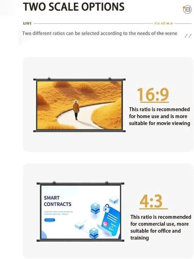 Applicable: wrinkle-free projection screen for projection, perfect for home, outdoor party, office or classroom use. A convenient movie screen for you in a variety of venues