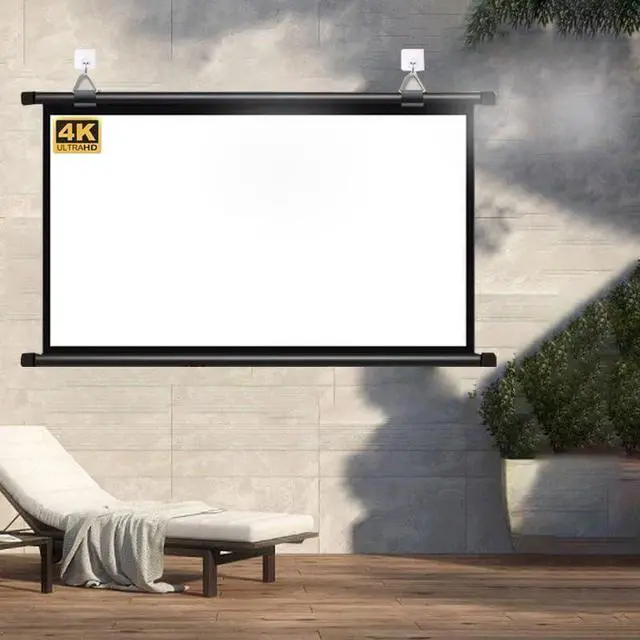 Reel projector movie screen is easy and quick to install. Removable slide buckle Multiple mounting methods, free to match different mounting distances Rope, sticky hooks, nails, etc. can be used for wall mounting