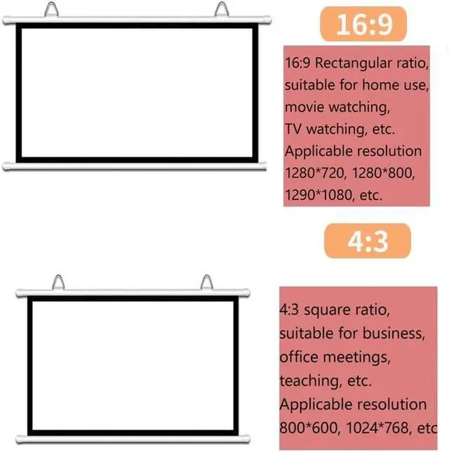 Material: The manual projection screen is made of white fiberglass, which restores the real picture quality and has good anti light effect, bringing you and your family a high-definition visual experience