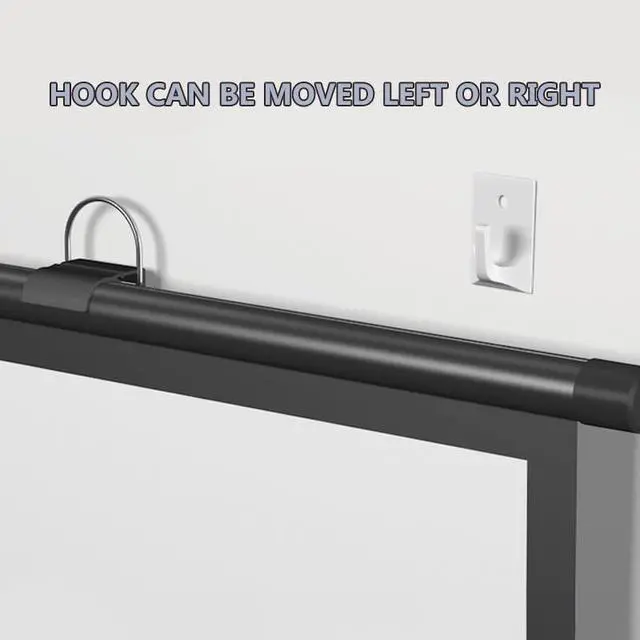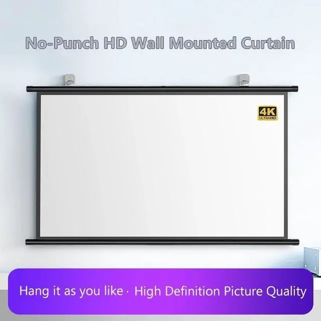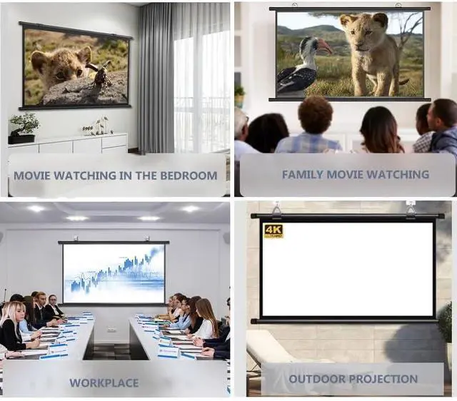 Convenient projection screen 16:9/4:3 format for brighter images, the hook above the wall mounted projector screen can be adjusted left or right. Manual projector screen gives you and your family a high definition visual experience