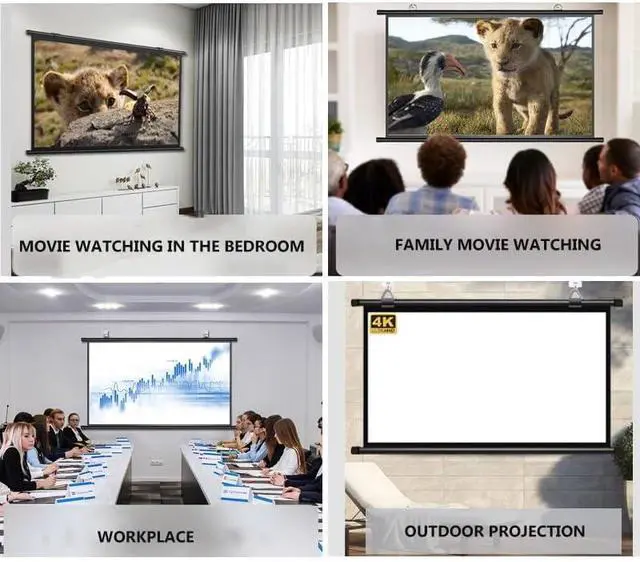 Visual Experience: the scroll projector screen uses a black border to enhance image contrast and focus light for a better viewing effect. Give you and your family a better viewing experience
