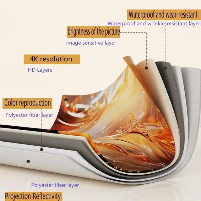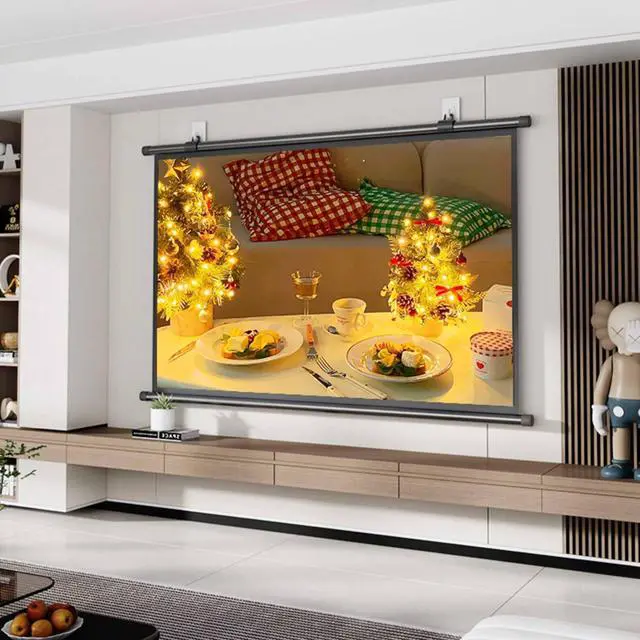 Clever design: the projection screen adopts mobile hooks, you can freely move the position, lightweight and beautiful.