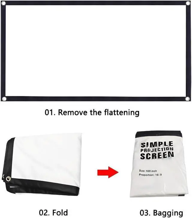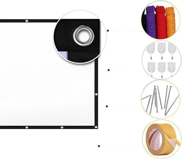 Easy to set up: The projector screen can be easily secured with hooks (shipped with hooks), ropes, stands, nails, double-sided tape on walls/brackets