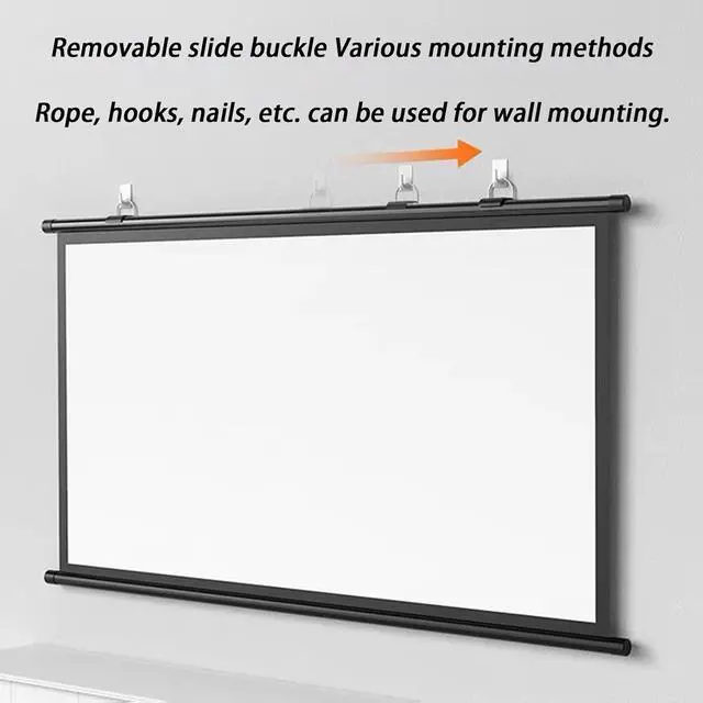 The portable projection screen turns your living room into a movie theater in minutes, with stunning visuals that make you feel like you're in a virtual world, creating a whole new experience for you and your friends. Features: dustproof, flat, non-wrinkle, durable and easy to clean. Two installation methods: can be installed on the wall and ceiling.
