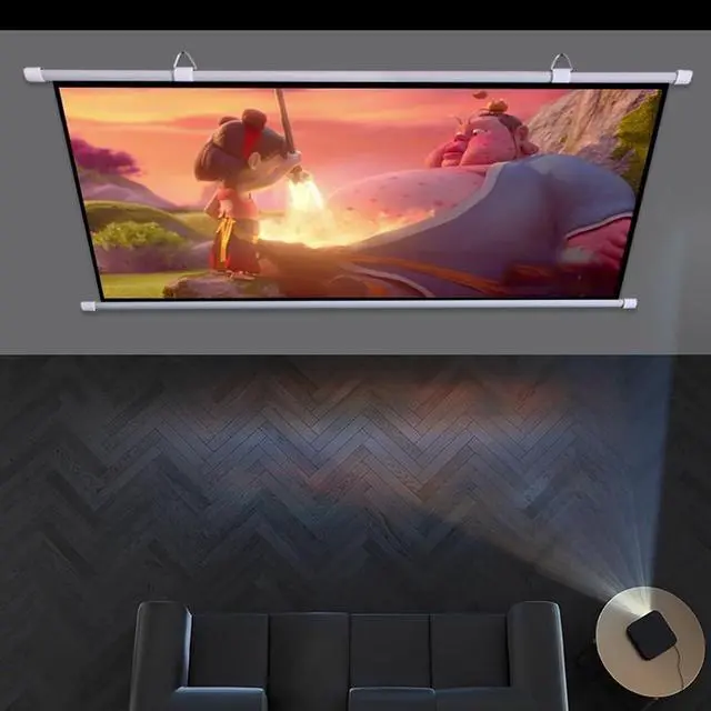 Easy and fast installation: Our projection screen is easy to install and quick to assemble. The two hanging rings can slide freely left and right, and the installation is unrestricted. It is also equipped with hook-free nails, making installation easy and fast.
