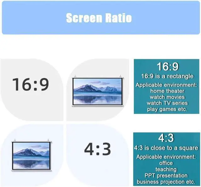 SCREEN FORMAT: The projection screen adopts 4:3/16:9 screen format, and the movie screen supports 3D, 4K and Full HD images, bringing you great visual enjoyment.