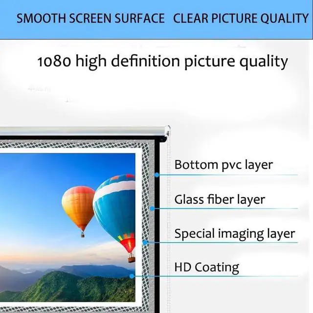 Material: The manual pull-down projection screen is made of white fiberglass material with true color rendering and light-resistant effect, which brings you and your friends, family and colleagues around you a great visual experience