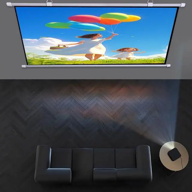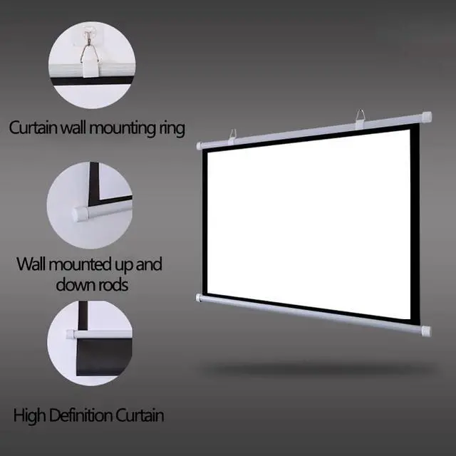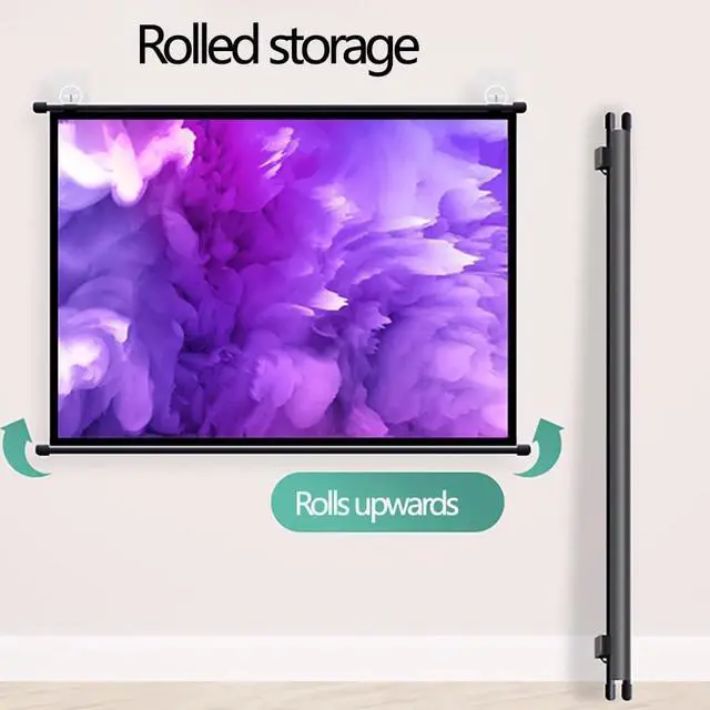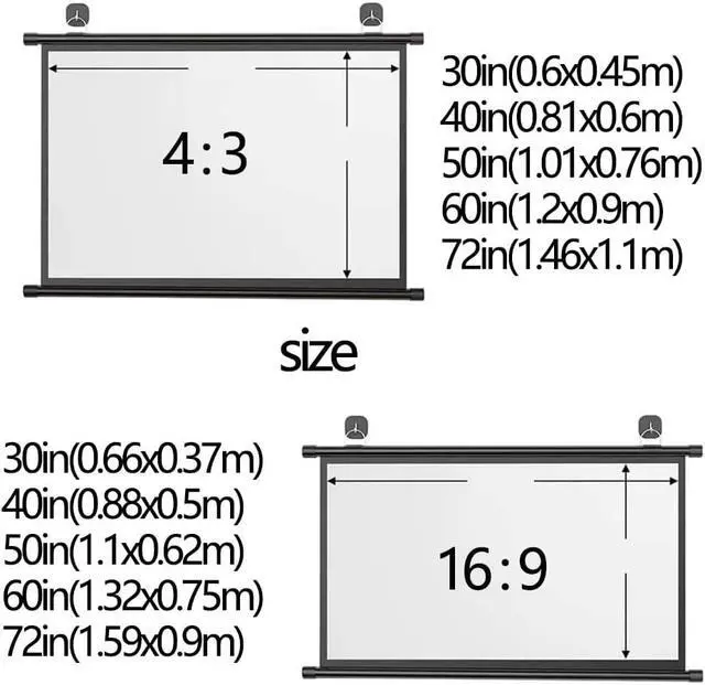 Size: 30in/40in/50in/60in/72in projection screen, providing 16:9/4:3 aspect ratio, which can be used for different scenes. It's lightweight and portable, and it can be easily rolled up by hand for storage or carried around