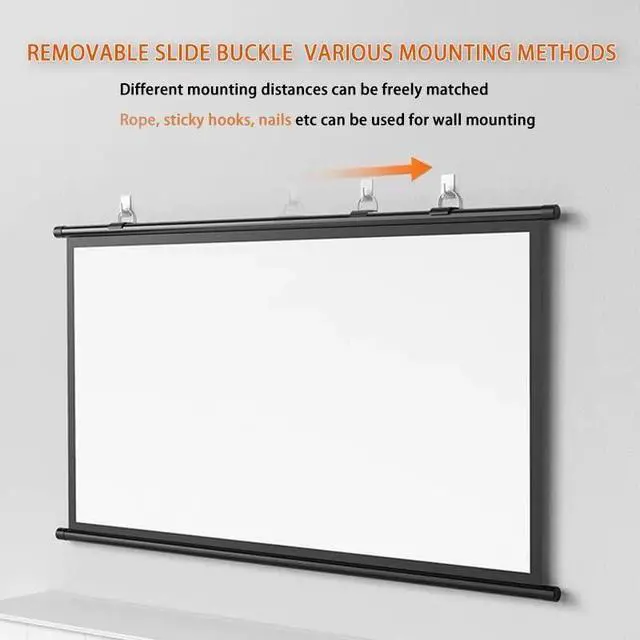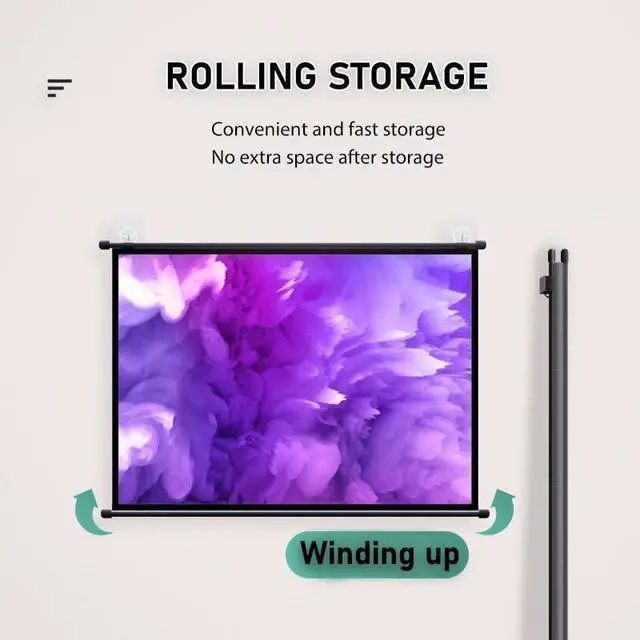 Convenient: manual roll down screen is easy to carry and store, compact and lightweight, easy to roll up, won't take up space when stored. Perfect for indoor and outdoor use