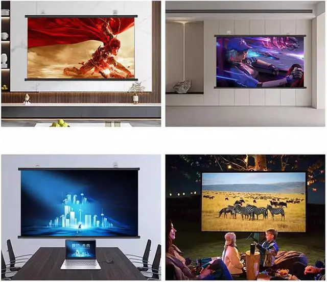 No drilling, ultra-clear anti-light projection screen, 8K ultra-clear picture quality/No drilling, movable/direct projection during the day, hand-roll storage, quick disassembly, portable and easy to move