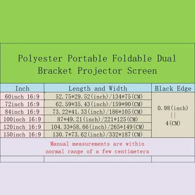 GOOD COVERAGE: 100 inch diagonal 16:9 format screen image size provides an ideal home theater experience for families and groups to enjoy movies, sports and gaming on the big screen.