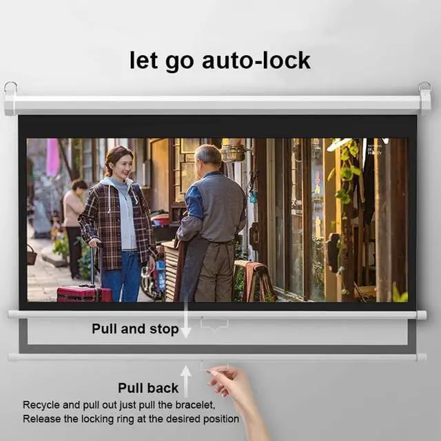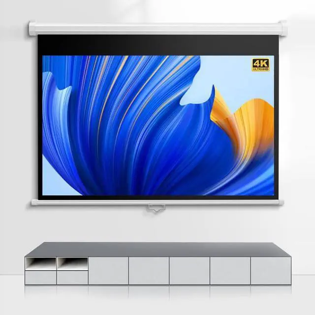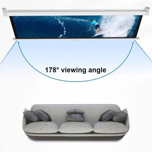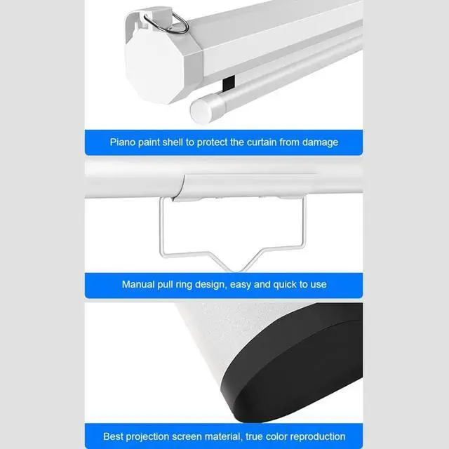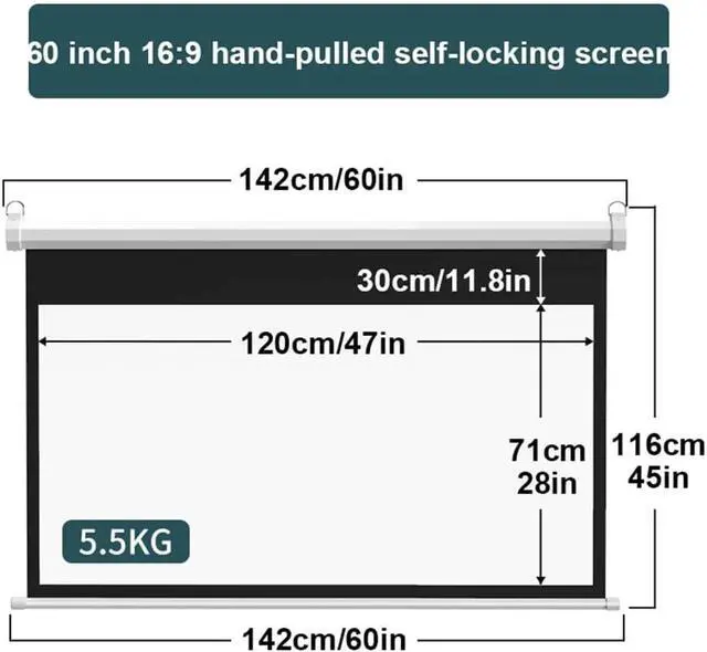 Welcome to my shop!If you need other styles, please come to our store to choose.Professional manual projection screen, 60/72 inches, format: 4:3/16:9, can be installed on the wall or ceiling. There is a 3 cm black border, which increases the contrast and makes it easier to adjust the picture. The back of the canvas is black and opaque. The projected light remains bright and has strong colors.product descriptionName: Wall-Mounted Hanging Projector ScreenScreen material: HD white glass fiber materialCoating: HD coating, imaging photosensitive layer, anti-wrinkle waterproof layer, PVC layerProduct size: 60inch, 72inch Aspect ratio: 4:3 16:9Gain factor: 2.5Product weight: 60inch-4:3: 5kg, 60inch-16:9: 5.5kg, 72inch-4:3: 5.8kg, 72inch-16:9: 6.3kgInstallation method: Wall MountedProducts include:1x projector screen2x hooksTips: Due to the difference in light and screen, the item's color may be slightly different from the pictures. Please allow 1-2cm differences due to manual measurement. If you have any questions, please contact us in time, we will try our best to solve it for you within 24 hours!