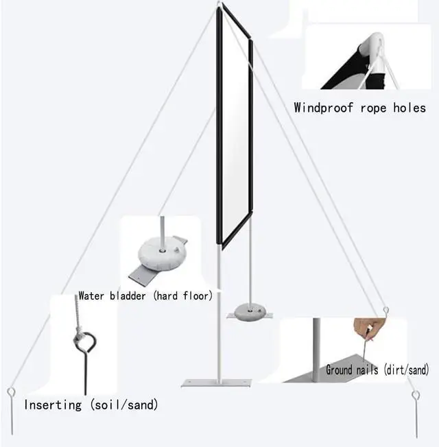 Package includes: 1* projector screen, 2* windscreen, 2* hydration bladder